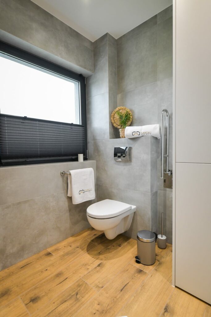 - Parking: Prywatne, bezpłatne miejsce postojowe bezpośrednio przy apartamencie.
