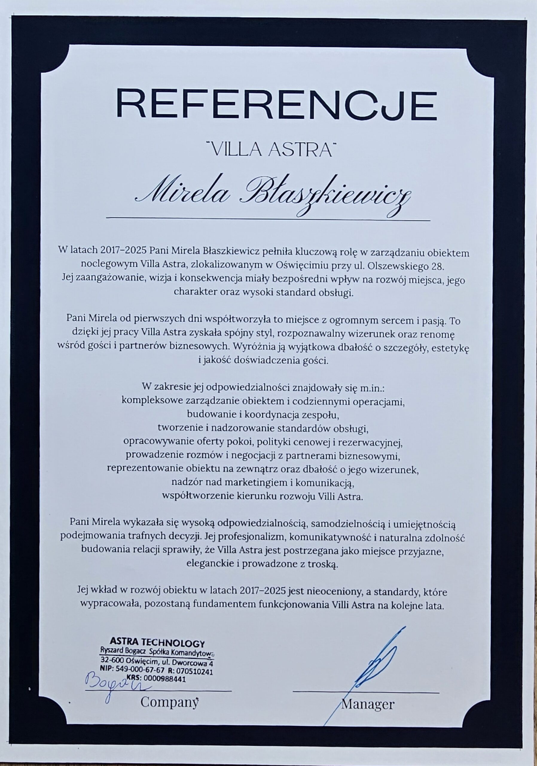Moje doświadczenie to ponad 10 lat pracy w branży hotelowej oraz 6 lat w gastronomii, gdzie jako generalny manager budowałam koncept od podstaw. Dzięki temu poznałam tę branżę nie tylko z perspektywy zarządzania, ale również od strony codziennej, praktycznej pracy – od sprzątania pokoi, przez rekrutację pracowników, po obsługę gości i tworzenie procedur, które gwarantują jakość.